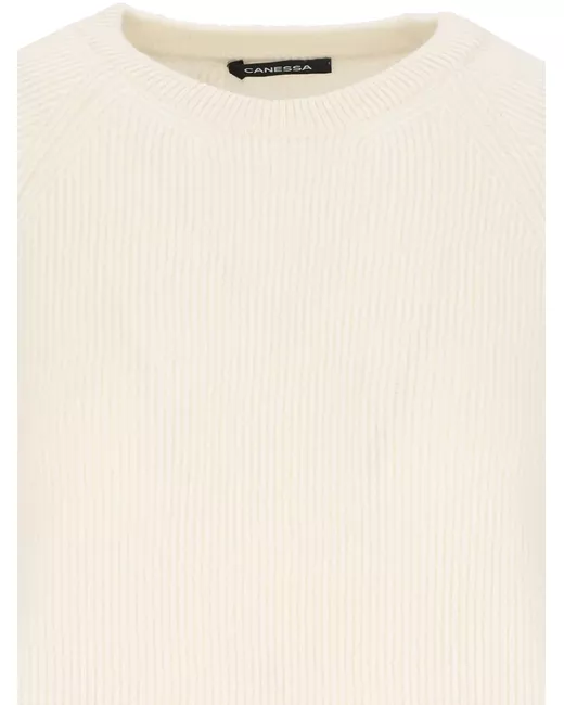 cream white cashmere ribbed knit crew neck long raglan sleeves straight hem