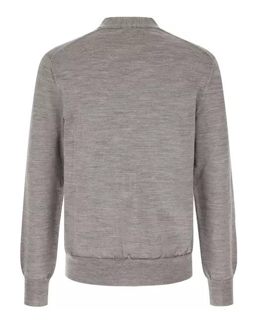 grey wool number-motif at the chest button fastening ribbed cuffs and hem V-neck long sleeves straight hem