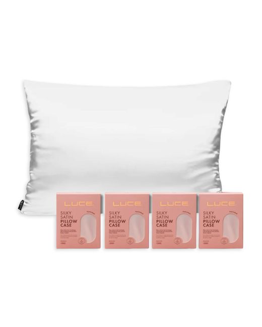 WHAT IS IT The Silky Satin Pillowcase Bundle is crafted to enhance your beauty sleep with luxurious satin pillowcases that deliver both comfort and beauty benefits. Perfect for any nightly routine, this bundle supports healthy hair and skin as you rest. Imported. BENEFITS Silky Satin Pillowcases: These premium satin pillowcases help reduce hair breakage, frizz, and tangles, while minimizing sleep lines and keeping skin smooth. The soft satin surface preserves skin moisture and protects delicate hair strands, allowing you to wake up refreshed. PERFECT FOR Suitable for all hair types, including curly and textured hair, and for anyone looking to maintain skin and hair health during sleep. HOW TO USE Place pillowcases on your preferred pillows for nightly use. Sleep on the satin surface to reduce hair friction and support skin hydration. WHAT'S INCLUDED 4 silky satin pillowcases. Beauty - Wellness Lsd Mp > Luce > Saks Fifth Avenue > Barneys. Luce. Color: White.