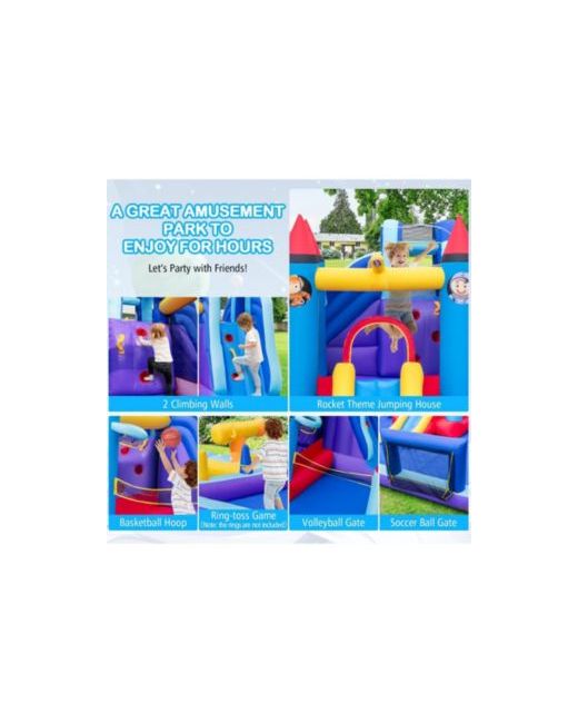 Bring the excitement of outer space to your backyard with this Rocket-Themed Inflatable Water Castle! This multifunctional bouncy house serves as a water park when connected to a hose, offering a thrilling water slide, splash pool, and water for endless summer fun. The castle's rocket theme will captivate kids, providing a unique play experience while they jump, slide, and splash.