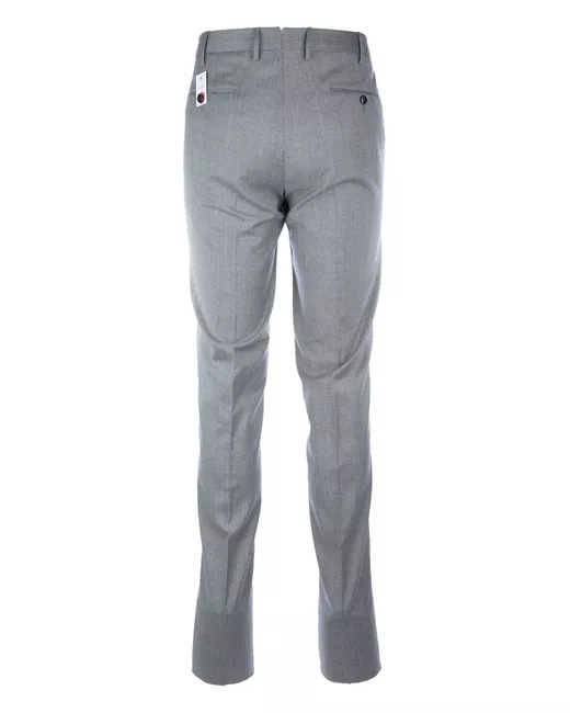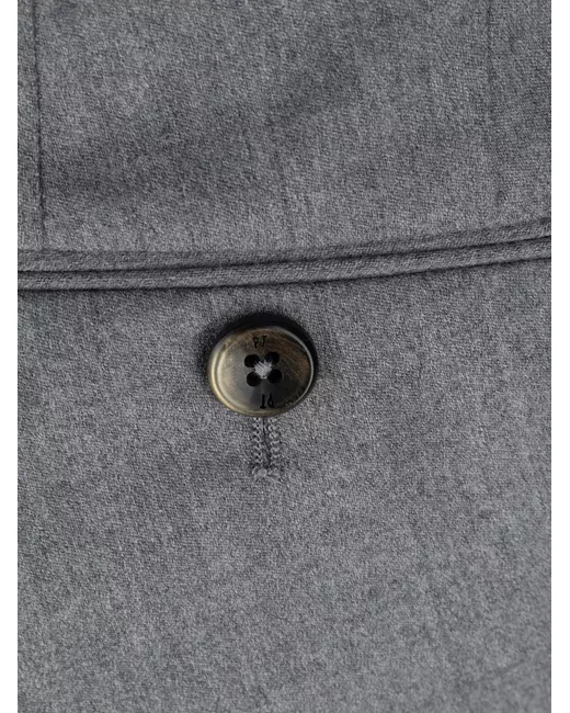medium grey concealed front fastening two side inset pockets two rear button-fastening jetted pockets belt loops