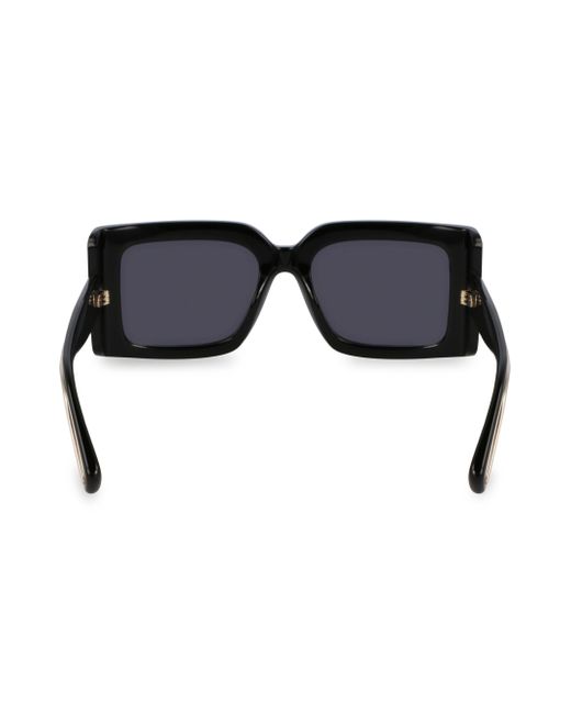 From the Prisma Collection. These FERRAGAMO sunglasses are designed with a modified rectangular silhouette. The plastic frame is adorned with a laser-engraved logo. 100% UV protection Solid grey lenses Includes cleaning cloth Plastic Made in Italy SIZE 55mm lens width 19mm bridge width 140mm temple length ABOUT THE BRAND Italian designer Salvatore Ferragamo began his journey in 1927 with a vision of creating the world's most beautiful shoes. The label expanded to menswear in the 1970s, and remains famed for its made-in-Italy pieces. The craftsmanship inherent in its shoes is also found in accessories like sunglasses, belts and ties. The brand's signature Gancini logo-a backwards horseshoe-can be found on its classic loafers and fine leather goods. Soft Accessories - Sunglasses > Ferragamo > Saks Fifth Avenue > Barneys. FERRAGAMO. Color: Dark Grey Black.