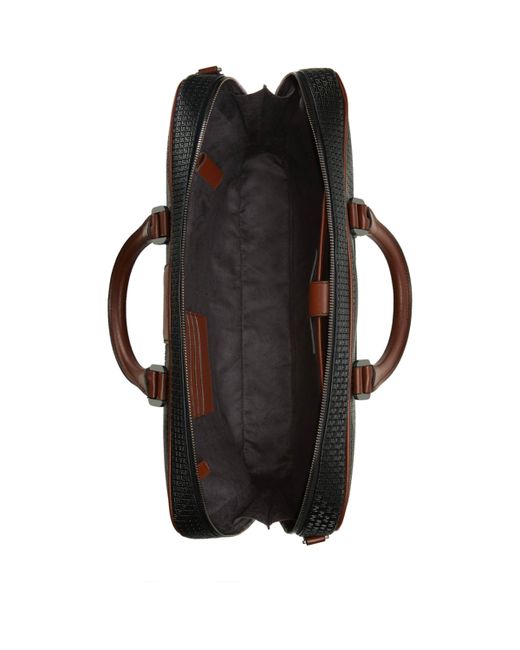 Crafted from the label's signature Stepan coated canvas, Serapian's City briefcase is the perfect long-term work or travel companion. The top zipper opening reveals a spacious interior, with classic leather panels and twin top handles offering a touch of heritage charm to the modern profile.