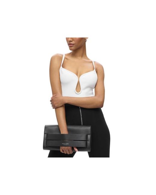 Herve Leger Etta Leather Clutch.Color:Black Silver.Size:OS.Material:Leather.Handbags & Wallets.