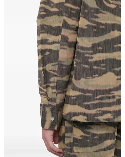 green/multicolour silk blend zebra print front zip fastening straight-point collar long sleeves buttoned cuffs straight hem