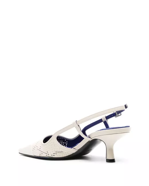 ivory white calf leather panelled design perforated detailing pointed square toe buckle-fastening slingback strap contrast quilted lining branded footbed 50mm heel This piece comes complete with a protective dust bag.