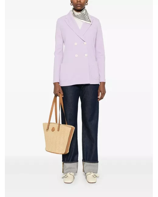 orchid purple cotton blend stretch-design textured finish double-breasted button fastening notched lapels long sleeves buttoned cuffs chest welt pocket dart detailing two side patch pockets unlined straight hem