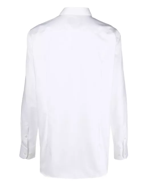 cloud white cotton classic collar front button fastening long sleeves curved hem