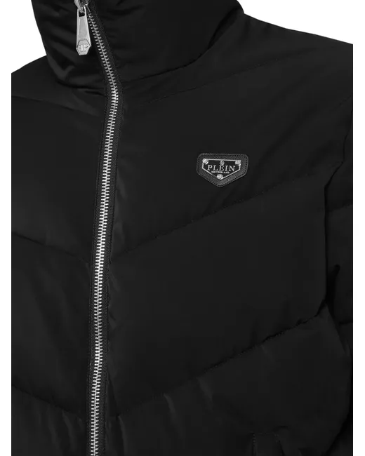 black front zip fastening two side zip-fastening pockets elasticated cuffs logo patch at the chest