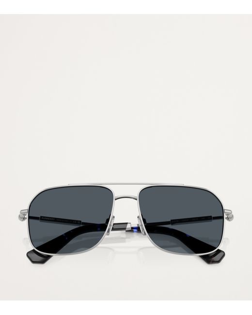 These Burberry square sunglasses feature a sleek metal frame that offers solid colour lenses with 100% uv protection. The Italian-made sunglasses showcase meticulous attention to detail with engraved Burberry hallmarks on the temples, reflecting the brand's heritage of quality and style. Perfect for adding a polished touch to any look, they are an ideal accessory for those who appreciate contemporary elegance with timeless appeal