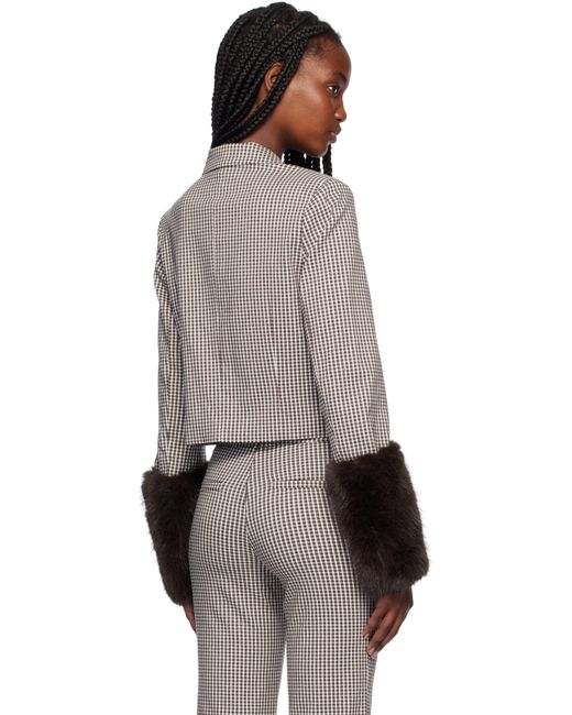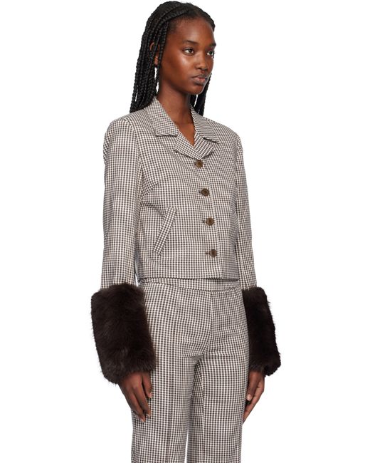 Stretch rayon-blend broadcloth jacket. Jacquard check pattern throughout. · Notched lapel · Button closure · Welt pockets · Darts at front · Welt pockets · Cropped hem · Four-button surgeon's cuffs · Removable faux-fur arm warmers · Full satin lining · Logo-engraved corozo hardware Supplier color: Dark chocolate