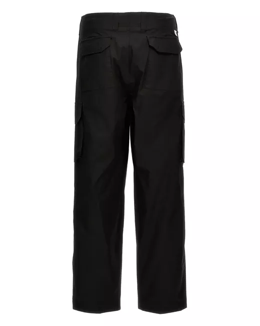 black concealed fly and button fastening belt loops two side inset pockets multiple cargo pockets