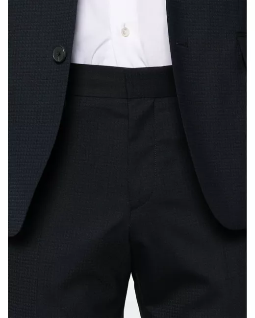 midnight blue concealed front button, hook and zip fastening chest welt pocket central rear vent belt loops