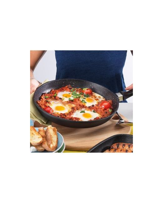 The Cuisine::pro Stone cookware collection redefines home cooking with its Stone-like, hard-wearing, non-stick coating, which is environmentally friendly and Pfoa pollution-free. Crafted from cast aluminum for optimal heat distribution, each piece is designed to reduce cooking time and energy use while being suitable for all cooktops, oven, and dishwasher safe. With ergonomically designed stay-cool Bakelite handles, Stone ensures a safe and enjoyable cooking experience for every culinary enthusiast.