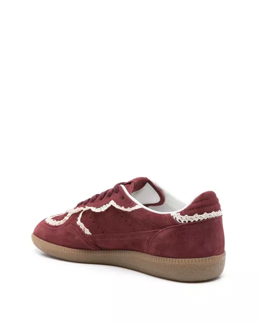 bordeaux leather upper rubber sole lace trim panelled design front lace-up fastening