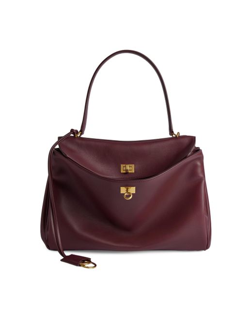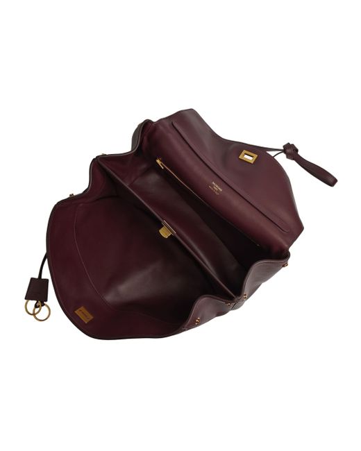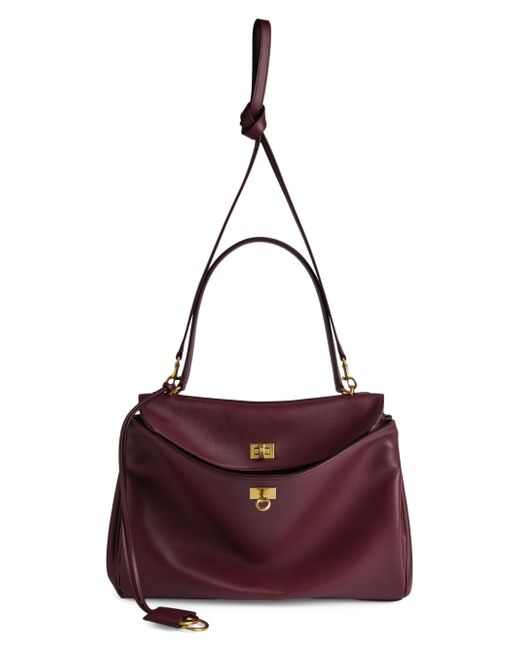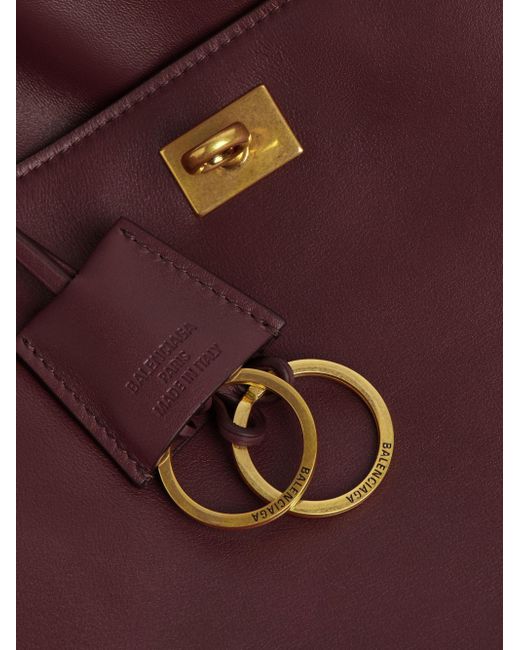 Smooth calfskin Handbag One handle (drop: 8.1 inch) Removable shoulder strap (drop: 22.6 inch) Removable leather key holder with two split rings Aged-gold hardware Turn lock closure Wide front pocket 1 main compartment 1 inner zipped pocket 2 flat pockets at back Side snaps 4 brass feet Nappa lambskin lining Wipe with a soft cloth Made in Italy SIZE Dimensions: 13.8 L x 9.2 H x 4.3 W inch. Lsd Handbags - Balenciaga > Balenciaga > Saks Fifth Avenue > Barneys. Balenciaga. Color: Burgundy.
