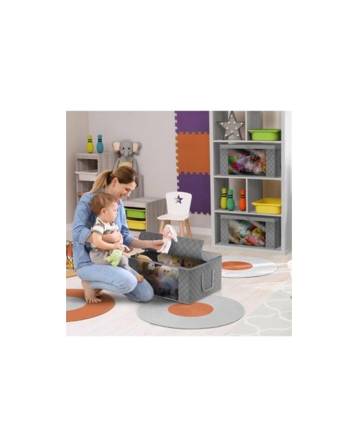 Don't let limited closet space cramp your style! Store out-of-season or infrequently used items with ease. Make the most of your wardrobe with folded garments that neatly fit into soft storage bags. Whether you're storing sweaters, guestroom linens, or your favorite designer bags, these organizers are perfect for the closet, bedroom, laundry room, or attic. Once filled, they easily fit on shelves, stack on top of each other, or slide under the bed to maximize space. Traveling or moving? Easy-carry handles make these bags portable and convenient for transporting to new locations. Easily view contents through transparent side windows while packing the car for a long trip or unloading the U-Haul for a seamless move. Breathable fabric protects against dust while allowing airflow to keep items fresh. Durable and compact for space-saving storage. Made of polypropylene nonwoven fabric. Includes three divided sections, one large transparent window, zipper closures, and 2 handles.