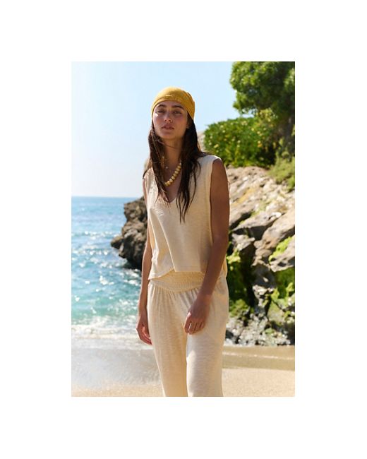 Get set for the weekend in this effortless co-ord from our FP Beach collection. **Fit:** Top: Relaxed, V-neck silhouette with longer back hem; Pants: High-rise, billowy wide-leg silhouette **Features:** Top: Slit hem feature, dropped armholes, twisted border detailing; Pants: Pointed smocked waistband, button-up detailing at hem, side pockets **Why We Keep It Cool Co-Ord by free-est at Free People in Sweetish Lemon, Size: XS