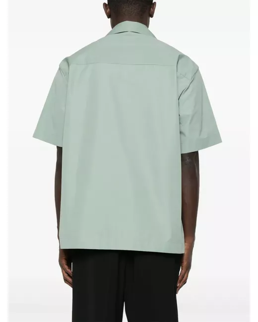 sage green front button fastening pointed flat collar short sleeves straight hem