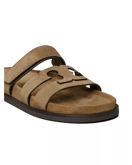 brown slip-on style touch-strap fastening appliqué logo flat rubber sole