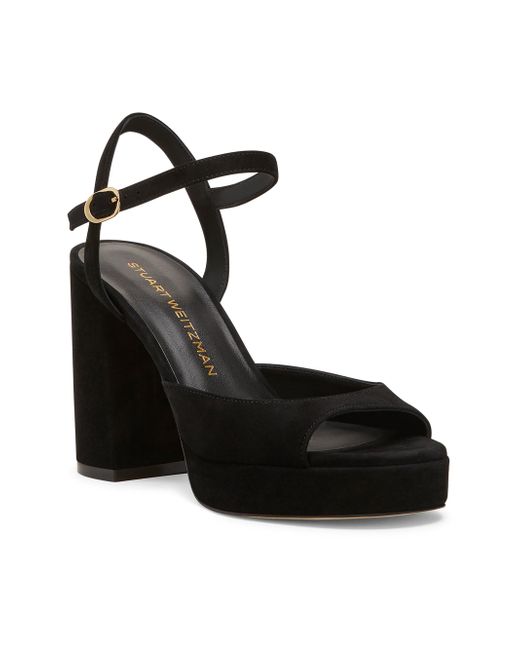 Crafted of suede, Stuart Weitzman's Dayna II sandals exemplify the label's balance of comfort and style. This pair features a chunky heel and platform sole, secured with a buckle closure. Open toe Buckle closure Suede upper Leather lining Leather/TPU sole Made in Spain SIZE Block heel: about 4" (100mm) Platform: about 0.8" (20mm) ABOUT THE BRAND Designer Stuart Weitzman started his career designing for his father's shoe company, before launching his own brand in 1986. Known for his glamorous pumps and over-the-knee boots, Weitzman has also incorporated unique materials in his designs, ranging from Lucite and wallpaper to cork, vinyl and even gold. Today, the label continues to create classic, feminine silhouettes that balance both comfort and style. Women's Shoes - Stuart Weitzman Wmn Shoe > Stuart Weitzman > Saks Fifth Avenue > Barneys. Stuart Weitzman. Color: Black. Size: 10.