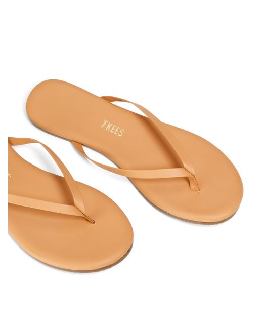 Designed to feel like a second skin, Tkees' Foundations Matte thong sandals are handcrafted of soft Brazilian leather. Leather upper Thong toe Slip-on style Lining: Leather Rubber sole Imported. Women's Shoes - Contemporary Shoes > Tkees > Saks Fifth Avenue > Barneys. Tkees. Color: Sunbliss. Size: 5.