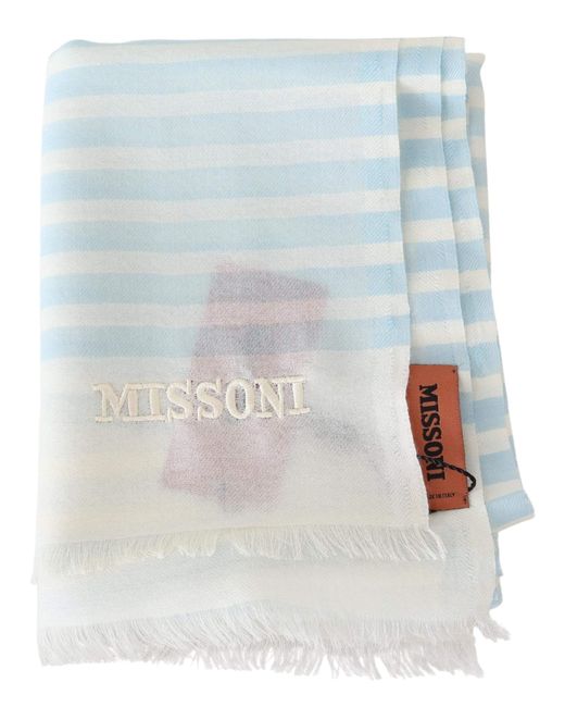 MISSONI Gorgeous brand new with tags, 100% Authentic Missoni cashmere scarf with line pattern design and brand logo embroidery. Material: 100% Cashmere Color: Blue White Gender: Unisex Fringes Logo details Made in Italy SIZE: 100cm x 68cm