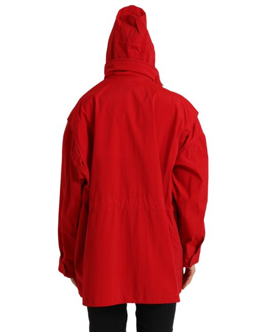 DOLCE & GABBANA Gorgeous brand new, 100% Authentic Dolce & Gabbana polyester jacket. Embellished with decorative DG-branded buttons, a hood and flap pockets. Model: Long sleeves jacket Color: Red Fitting: Regular Button closure Logo details Made in Italy Very exclusive and high craftsmanship Material: 100% Polyester