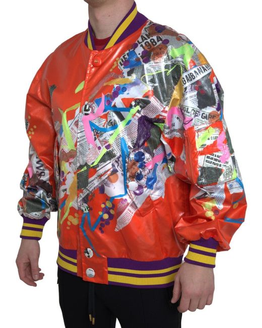 DOLCE & GABBANA Absolutely stunning, 100% Authentic, brand new with tags Dolce & Gabbana polyester jacket with print. Model: Bomber jacket Color: Orange Button closure Logo details Made in Italy Material: 100% Polyester