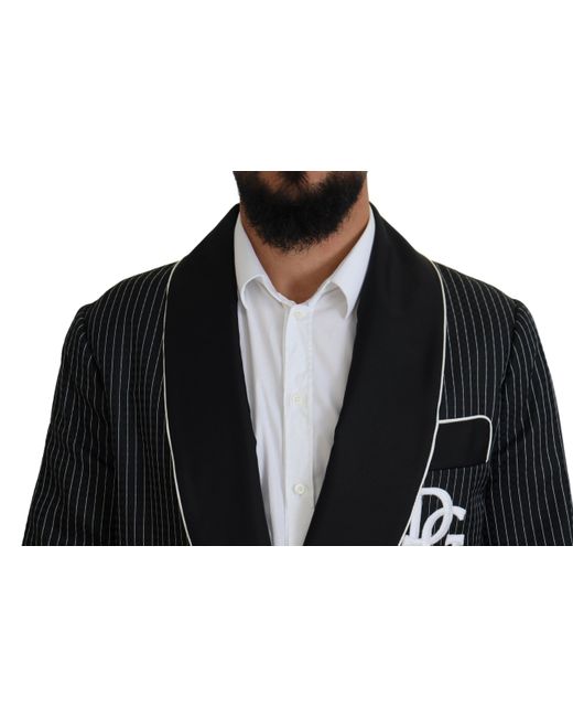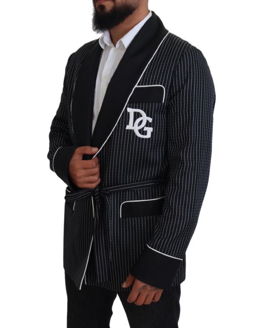 DOLCE & GABBANA Absolutely stunning, 100% Authentic, brand new with tags Dolce & Gabbana blazer. Model: Blazer robe jacket Style: Robe wrap Color: Black, white with DG patch Waist belt closure Silk inner lining Logo details Made in Italy Material: 64% Polyester 36% Silk Lining: 100% Silk