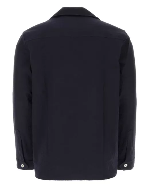 navy blue cotton blend spread collar button fastening two chest flap pockets long sleeves buttoned cuffs straight hem