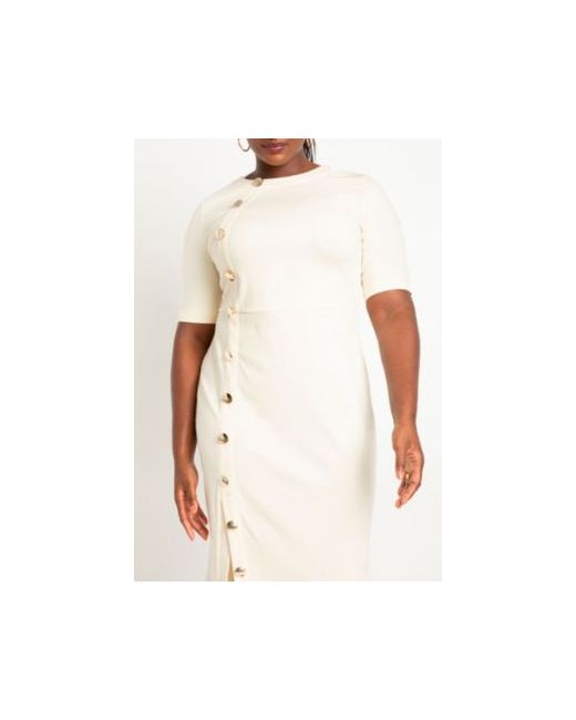 A jewel-neck dress crafted in stretch compact knit, featuring a half placket back zipper, hitting below the knee for a sophisticated look.