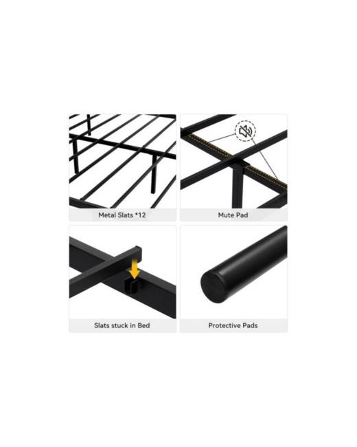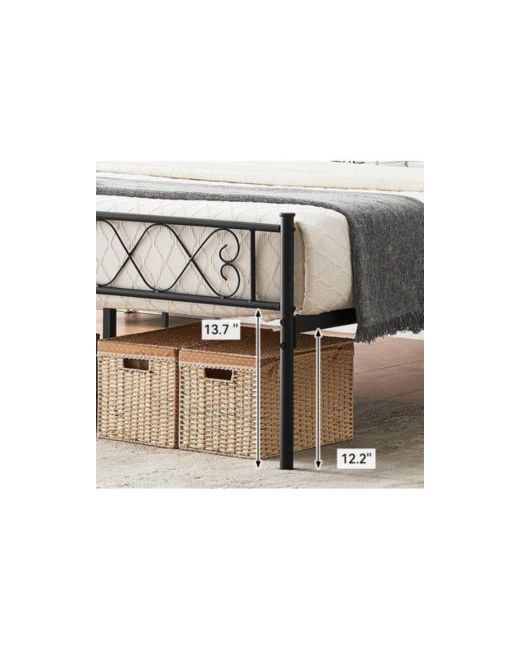 Maximize your space with our bed frame featuring 12.2 inches of storage underneath, perfect for keeping your personal belongings organized and out of sight. Designed with a modern and simple aesthetic, this frame eliminates the need for a box spring, securely holding your mattress in place without it sliding.Supported by a heavy-duty metal frame and 13 sturdy steel slats, this bed frame offers exceptional load-bearing capacity for a restful night's sleep. The center rail is lined with Eva foam to minimize noise, ensuring a quiet sleeping environment.Assembly is straightforward, as the slats easily click into place without requiring much time or effort. Additionally, protective support legs with smooth plugs are designed to prevent floor scratches, maximizing floor protection while providing sturdy support. Upgrade your bedroom with this functional and stylish under-bed storage frame.