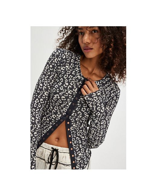 A staple style, now in print. Add the perfect touch of texture to every look with this timeless cardigan featured in a classic, fitted silhouette and comfy waffle knit fabrication with button-front closure for multiple ways to wear. **Fit:** Classic, fitted style **Features:** Button-front closure, waffle knit fabrication, crew neckline, long fitted sleeves **Why We ❤ It:** This wear-anywhere cardigan is featured in a versatile style, perfect to be worn buttoned up or worn partially opened. Going Places Printed Cardi by Intimately at Free People in Choarcoal Combo, Size: XS