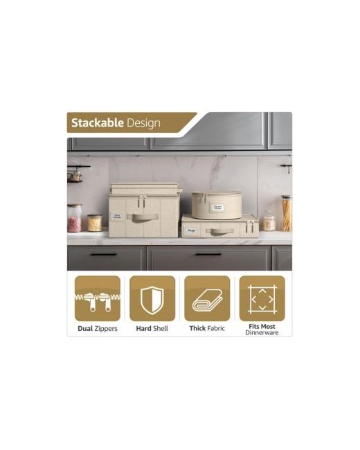 Store and organize your cherished dinnerware with the Sorbus 5-Piece Storage Set. Providing service for 12, this quilted set is designed to hold dinner plates, salad plates, dessert plates, saucer plates, and cups. A top loading design allows for easy access and the gentle nylon zippers keep your cases sealed and protected from dust. It features padded felt protectors to cushion plates and cardboard dividers to protect glassware and mugs from damage. With proper placement, cases can be stored in hutches, cabinets, pantry closets, or the buffet. For added convenience, add a chic label using the content label insert to quickly identify dishes for your next dinner party or afternoon tea. Keep your dishes in mint condition and ready to shine for special occasions. No more time-consuming searches for your prized tableware! This set is allows you to arrange your place settings with ease whether the meal is casual or formal