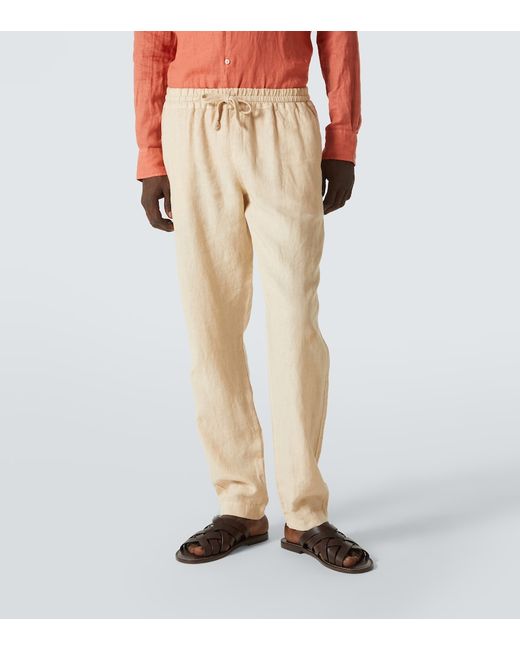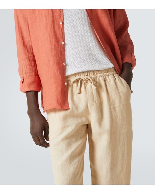 Material: 100% linen. Care instructions: hand wash. Made in Italy. Designer color name: Beige. Closure: drawstring. Pockets: side slit pockets, back pockets.