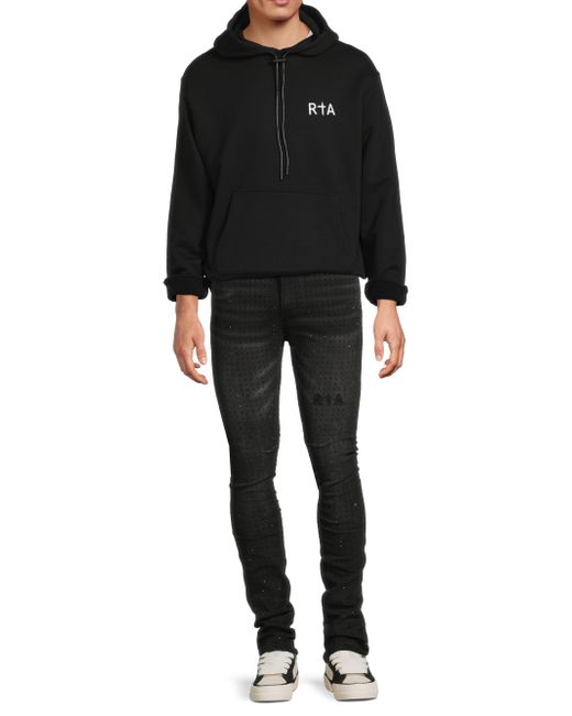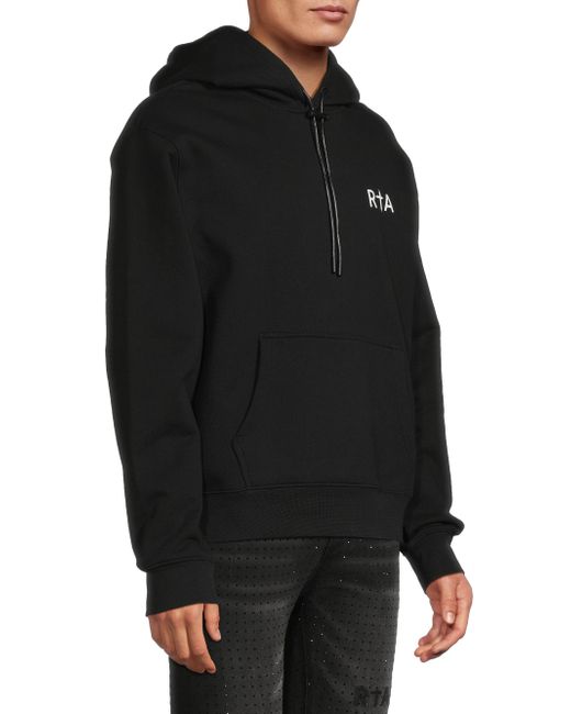 Crafted of cotton, the Dion hoodie features RTA's cross logo on the left chest and on the reverse. A kangaroo pocket and rib-knit trim lend added comfort to this style. Hood Long sleeves Kangaroo pocket Rib-knit trim Pulls over 100% cotton Machine wash Imported SIZE & FIT Regular fit About 27.5" from shoulder to hem Model measurements: 6'2" tall, 40" chest, 31" waist Model is wearing a US size Medium. Mens Denim & Contemp - Contemp Denim And Bottom > Rta > Saks Fifth Avenue > Barneys. RTA. Color: Black White Cross. Size: XXL.
