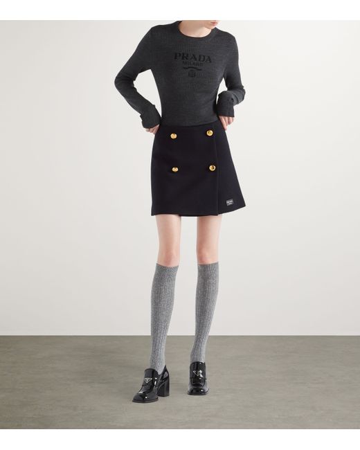 Whether it's used as a piece in the ever-on trend layering look or as a comfortable basic to style alongside mini skirts and jeans, this sweater from Prada is sure to become an oft-reached for piece in your rotation. That's not only because of its neutral hue and intarsia-knit logo, but because the superfine wool and silk piece is blended with stretch for a fluid, lightweight handle.