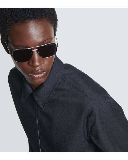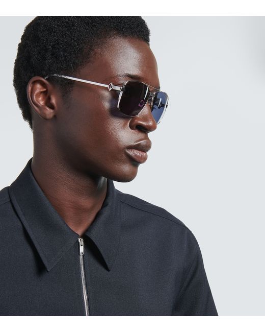Frame material: metal. Frame color: silver. Lens filter category 3. Lens color: blue. Made in Italy. Includes: case and presentation box, cleaning cloth. Designer color name: Shiny Palladium/ Blue.