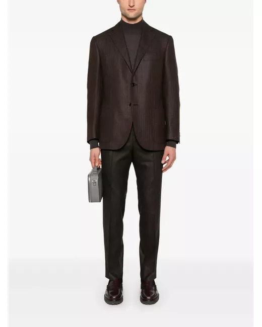 taupe brown front button fastening buttoned cuffs two front patch pockets English rear vents