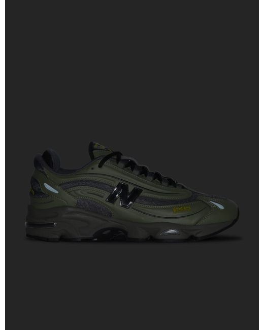 New Balance1000Upper with mesh and synthetic overlaysExternal lacing structure with nylon eyeletEmbroidered detailsReflective accentsRubberized āNā logo with transparent outlinePolyurethane and ABZORB midsoleABZORB cushioning at heelForefoot Stability WebSculpted midsole detailsColor: Dark Olivine with MagnetStyle code: M1000EAD