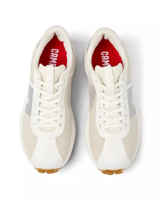 light beige front lace-up fastening branded heel counter pull-tab at the tongue panelled design