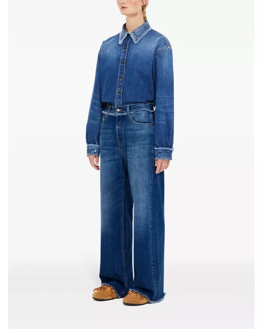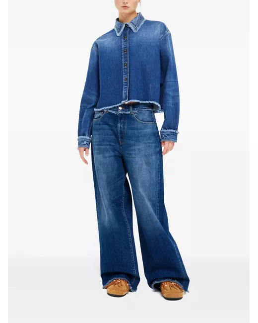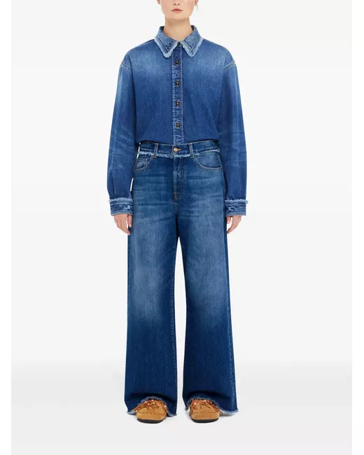 navy blue front button fastening belt loops classic five pockets logo patch to the rear