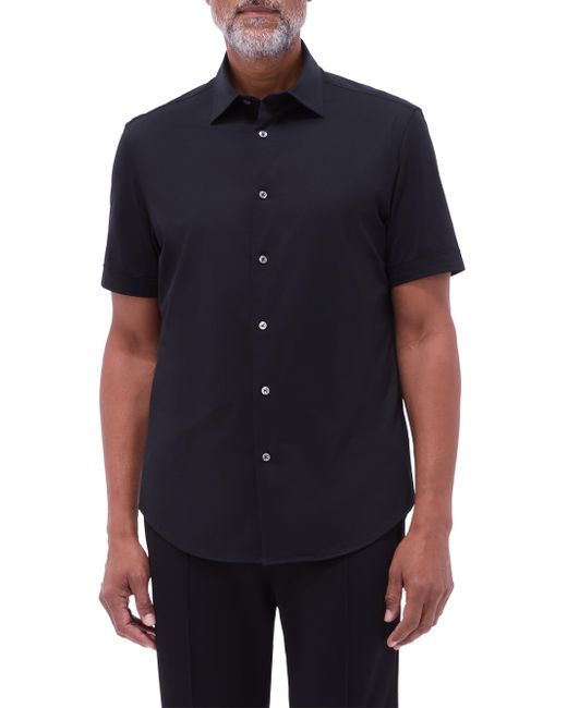 Bugatchi's Miles shirt, crafted of cotton, is designed with a point collar and button-front closure. Point collar Short sleeves Button-front closure 92% cotton/8% spandex Machine wash Imported SIZE & FIT Model measurements: 6'2" tall, 40" chest, 31" waist Model is wearing a US size Medium. Mens Modern Coll & Outer - Contemp Classic Collecti > Bugatchi > Saks Fifth Avenue > Barneys. Bugatchi. Color: Black. Size: Small.