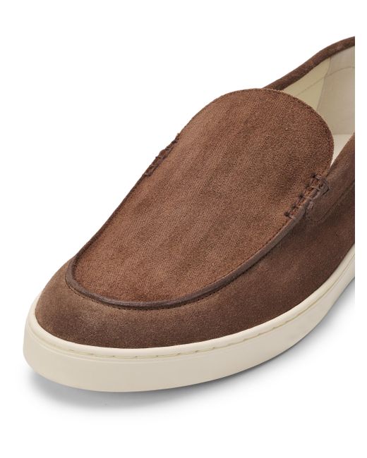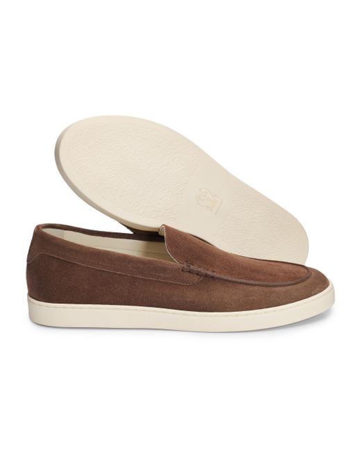 Brunello Cucinelli's loafers are crafted of suede with textured, tonal stripe detailing. This pair is finished with a rubber sole for added traction and durability. Round toe Slips on Suede upper Leather lining Rubber sole Made in Italy ABOUT THE BRAND Beginning with a focus in masterfully constructed cashmere pieces, Brunello Cucinelli's namesake heritage label quickly grew to be synonymous with fine Italian craftsmanship and casual luxury. Every piece-from knitwear to suiting to accessories-is made in Cucinelli's Solomeo studio, located in a 14th-century Italian village. Men's Shoes - Mens Classic Footwear > Brunello Cucinelli > Saks Fifth Avenue > Barneys. Brunello Cucinelli. Color: Brown. Size: 7.