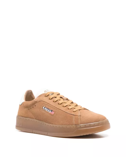 camel brown front lace-up fastening flat rubber sole branded insole logo-debossed tongue