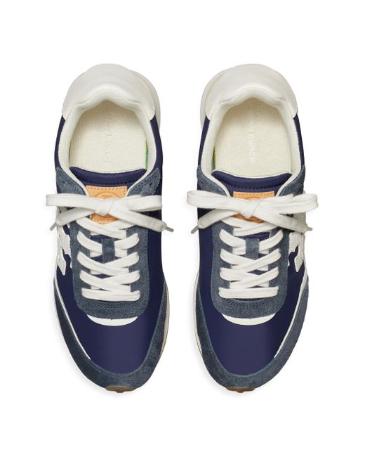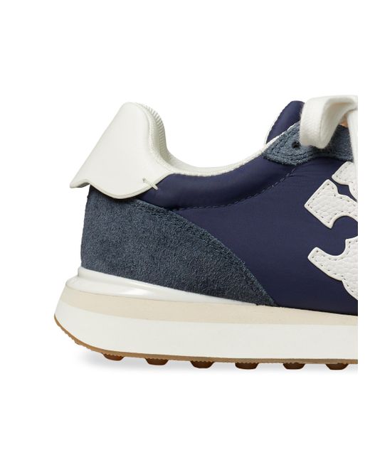 Tory Burch's Destiny sneakers are crafted of leather and suede and styled with the label's Double T logo. Round toe Lace-up style Suede/leather upper Polyester/suede lining Rubber sole Imported ABOUT THE BRAND Since debuting her brand in 2004, New York-based designer Tory Burch has made an impact on the fashion world with her handbags and shoes, and playful-yet-polished clothing. Today, Burch remains inspired by color and travel, with her vibrant collections bursting with prints, and her instantly recognizable double-T logo drawing from Moroccan architecture. Women's Shoes - Tory Burch Womens Shoes > Tory Burch > Saks Fifth Avenue > Barneys. Tory Burch. Color: Retro Navy. Size: 10.
