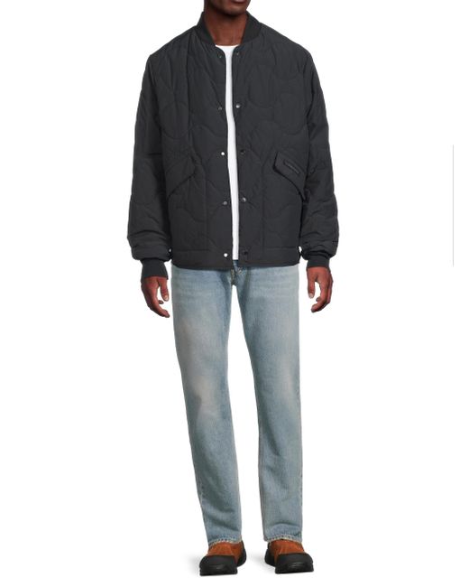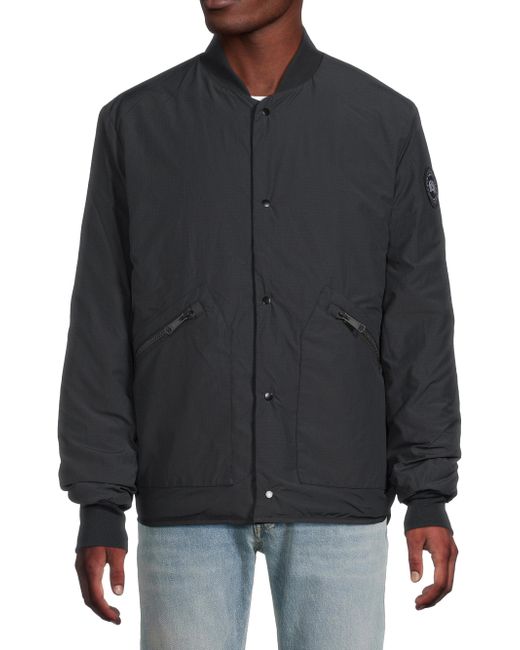 The Boswell jacket from Canada Goose highlights a quilted cotton and nylon design, detailed with a rib-knit baseball collar and cuffs. Side flap-patch pockets lend added comfort to this reversible style. Baseball collar Long sleeves, rib-knit cuffs Side flap-patch pockets Front snap-button closure Reversible 57% cotton/ 43% nylon 750 Fill Power Fill: 90% down/ 10% feathers Dry clean Made in Canada SIZE & FIT Model measurements: 6'2" tall, 40" chest, 31" waist Model is wearing a US size Medium. Mens Modern Coll & Outer - Canada Goose > Canada Goose > Saks Fifth Avenue > Barneys. Canada Goose. Color: Black. Size: XXL.