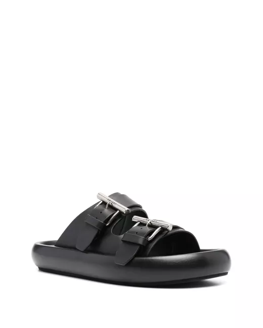 black double buckle fastening logo-engraved buckle branded insole flat sole