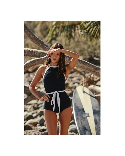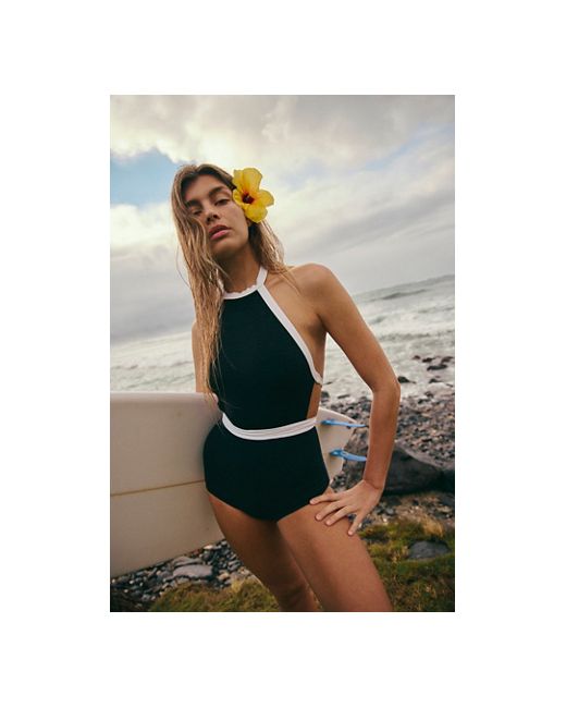 So flattering and functional, this one-piece from our free-est Swim collection features recycled fibers and a higher-neckline with adjustable ties at the waist. **Fit:** Formfitting, pull-on style, full bottom coverage **Features:** Recycled fibers, textured fabrication, high-neckline with adjustable ties, open back with crisscross detail, ties at waist, low-cut legs, fully-lined **Why We free-est Heidi Surf One-Piece at Free People in Black, Size: XS